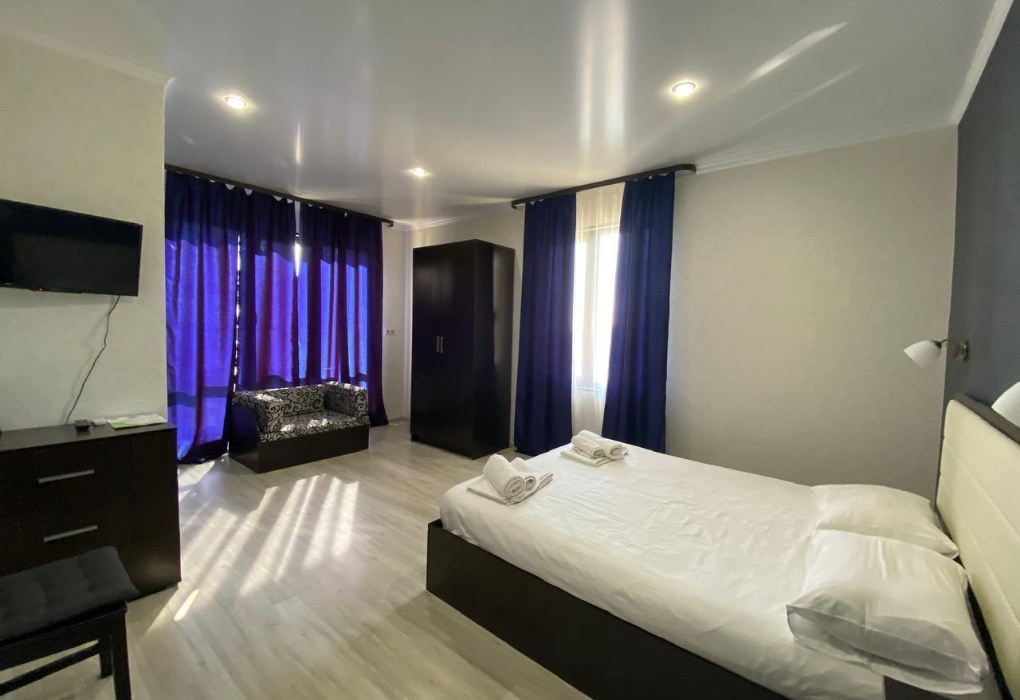 Площадь номера - 22 кв.м. 1 комната. 2 осн. места. выход на общий балкон, номер в видом на море. В номере: телевизор; кондиционер; душ; туалет; 2-спальная кровать. 1 доп. место: Еврораскладушка - может быть установлена без ограничения по возрасту.